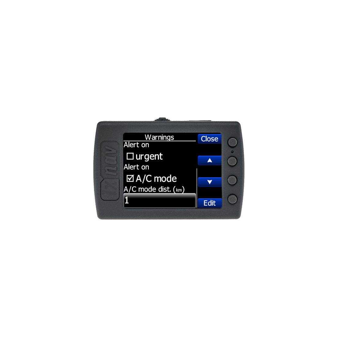 Quatre boutons poussoirs permettent une utilisation facile même avec des gants. Muni d'un écran de 2 pouces (340x240 pixels) Retina, il affiche tous les différents types d'objets FLARM, d'objets ADS-B et PCAS si les périphériques externes appropriés sont connectés.