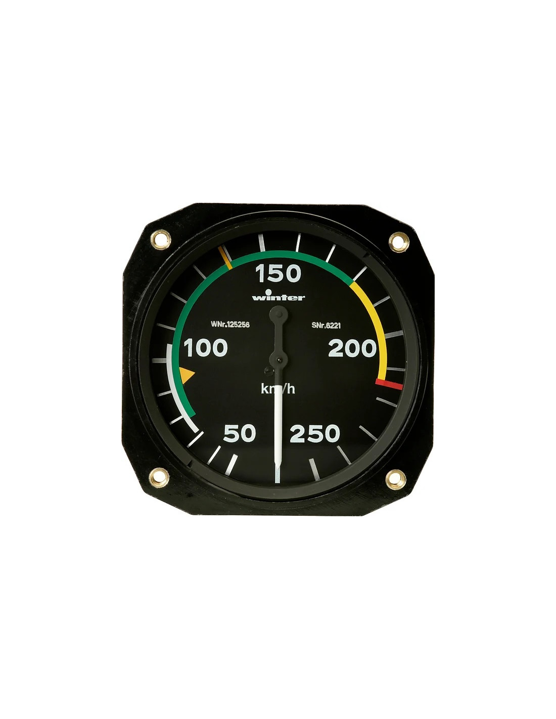 Anémomètre 6 FMS 221 - 80 mm - Graduations en km/h - 0 à 250 km/h (360°). Position du "0" sur le bas du cadran.