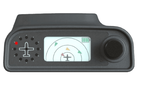 L'écran hybride révolutionnaire assure une lisibilité optimale dans toutes les conditions d'éclairage. L'affichage directionnel éprouvé avec des LED ultra-lumineuses reste facilement visible même en plein soleil et s'assombrit automatiquement la nuit pour éviter d'éblouir le pilote. L'écran LCD lumineux de 1,47 pouce fournit des informations supplémentaires sur les avions à proximité et permet une configuration conviviale. Son fonctionnement via la commande rotative est simple.