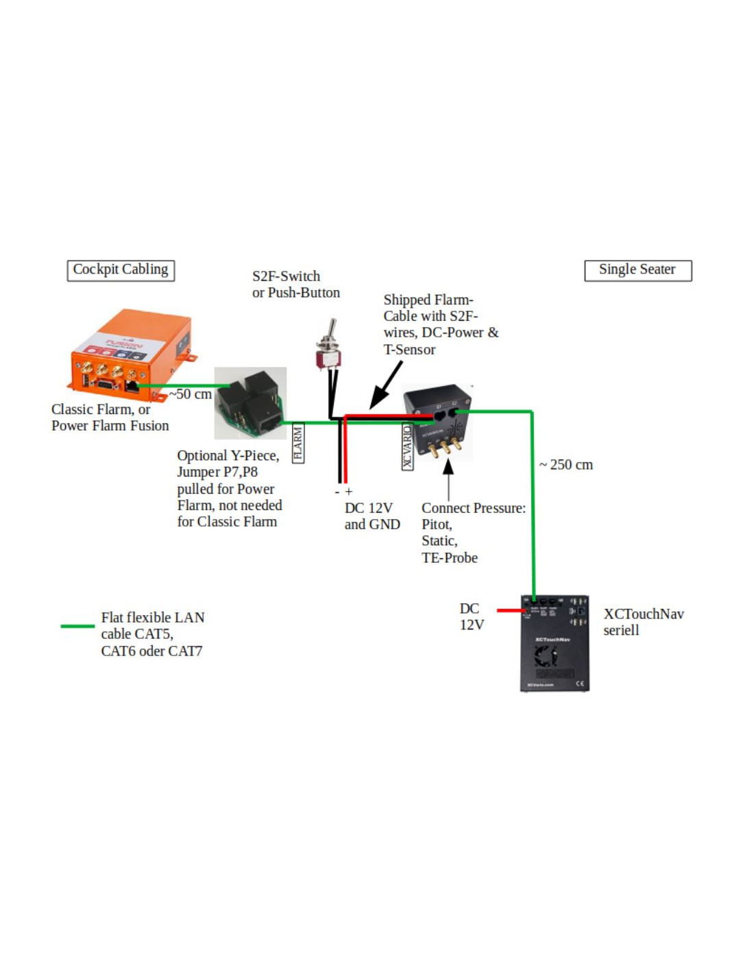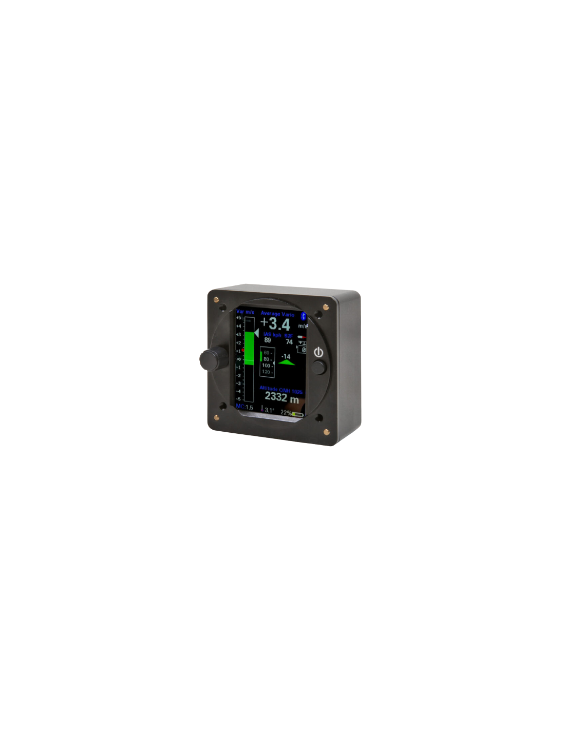 Le XC-Vario est un variomètre autonome à part entière doté d'un écran moderne lisible en plein soleil et d'un haut-parleur intégré. Il envoie les données de tous les capteurs (altitude, vario, vitesse et température) et, si nécessaire, FLARM via Bluetooth, WiFi ou en série dans différents formats (OpenVario, Borgelt, Cambridge 302) au logiciel de navigation de vol cross-country XCSoar.