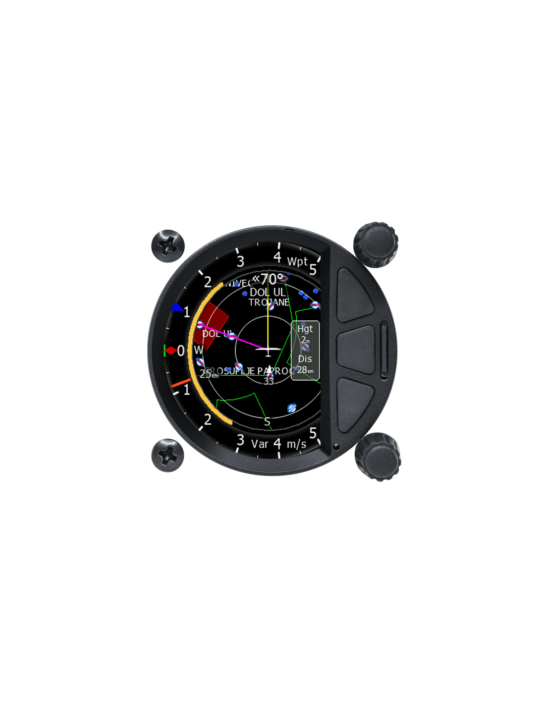 L'aiguille d'indication vario est entièrement numérique sur un écran antireflet extrêmement lumineux de 2,5 pouces avec une fréquence d'images très élevée de 60 Hz.