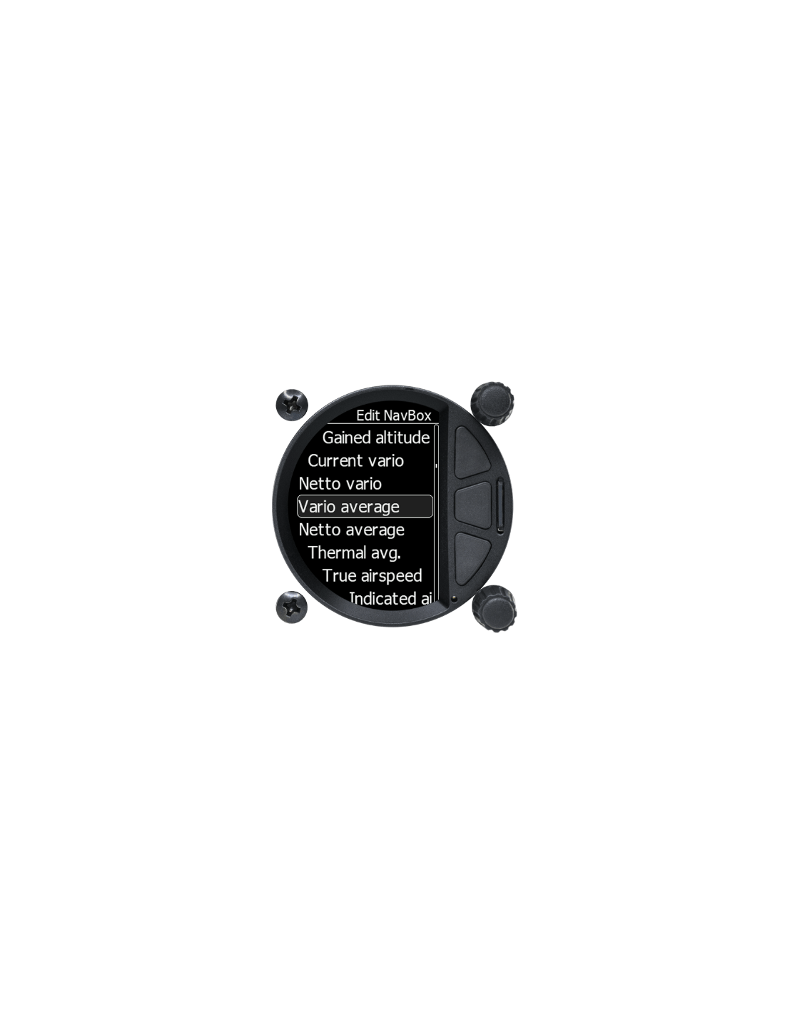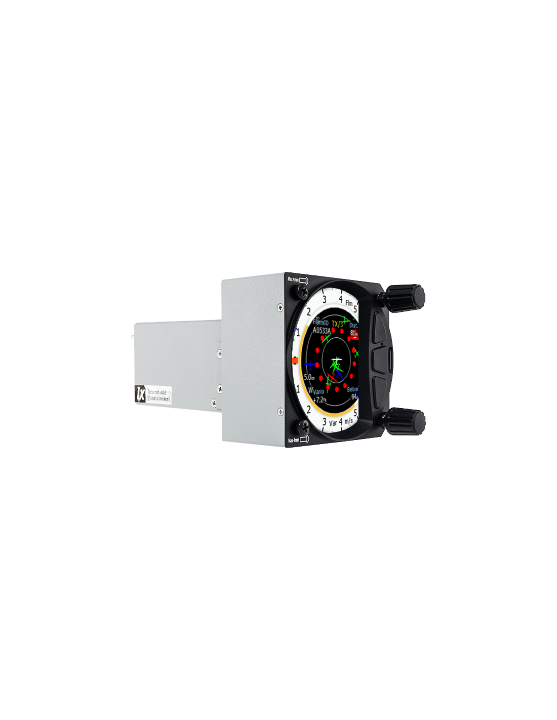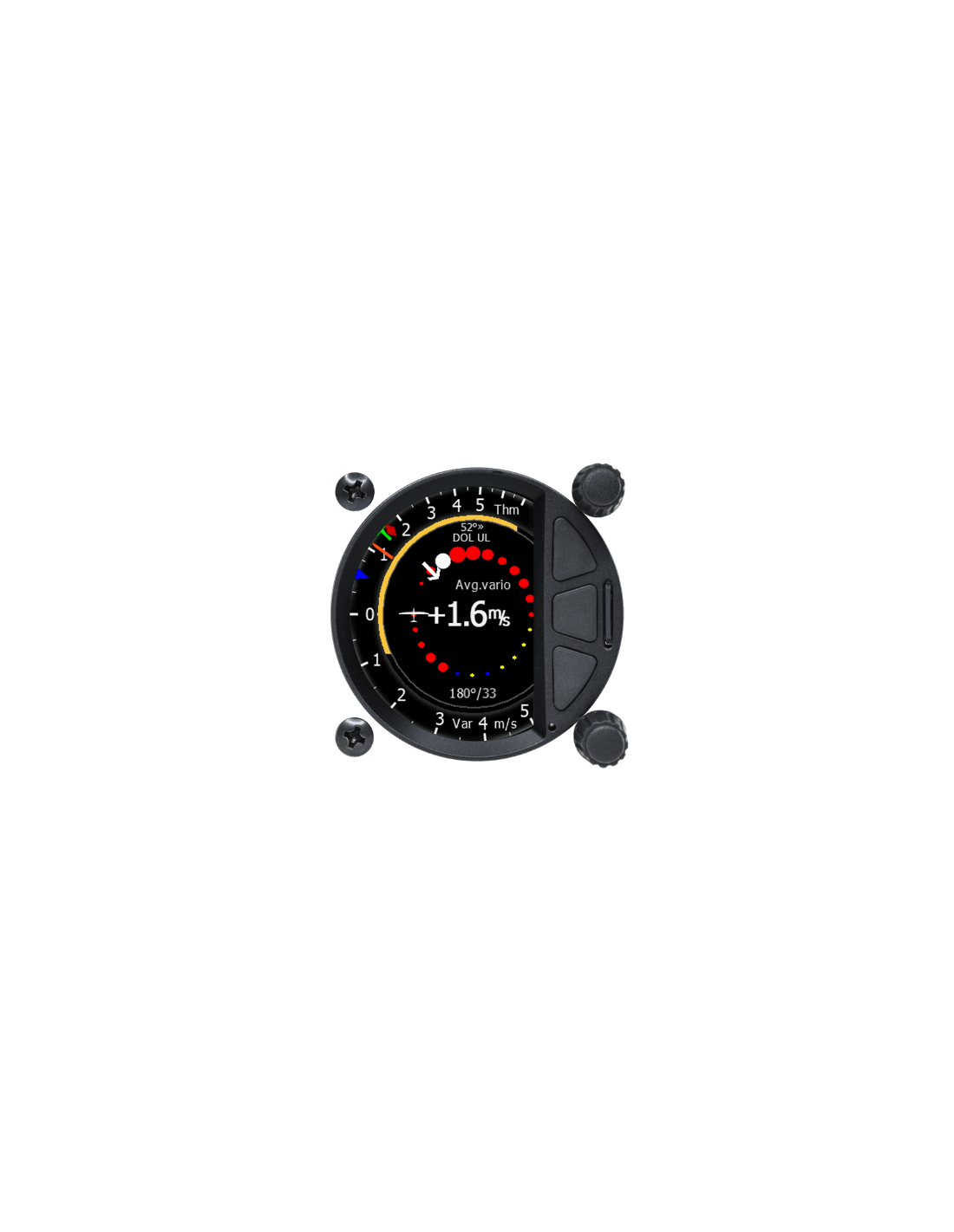 L'aiguille d'indication vario est entièrement numérique sur un écran antireflet extrêmement lumineux de 3,5 pouces avec une fréquence d'images très élevée de 60 Hz. Il s'insère dans un trou standard de 80 mm dans le tableau de bord.